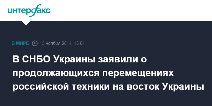Москва. 13 ноября. INTERFAX.RU - Украинская сторона настаивает на том, что российская сторона перемещает военную технику в контролируемые ополченцами районы Донбасса и концентрирует военные подразделения вдоль границы, заявили в Совете национальной безопасности и обороны.