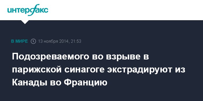 Подозреваемого во взрыве в парижской синагоге экстрадируют из Канады во Францию