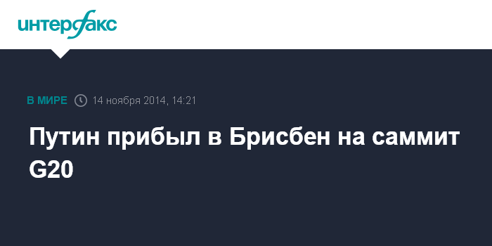 Москва. 14 ноября. INTERFAX.RU - Президент РФ Владимир Путин прибыл в австралийский Брисбен, где примет участие в саммитах БРИКС и "группы двадцати", а также проведет ряд двусторонних встреч с европейскими лидерами.