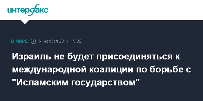 Израиль не будет присоединяться к международной коалиции по борьбе с "Исламским государством"