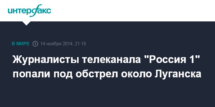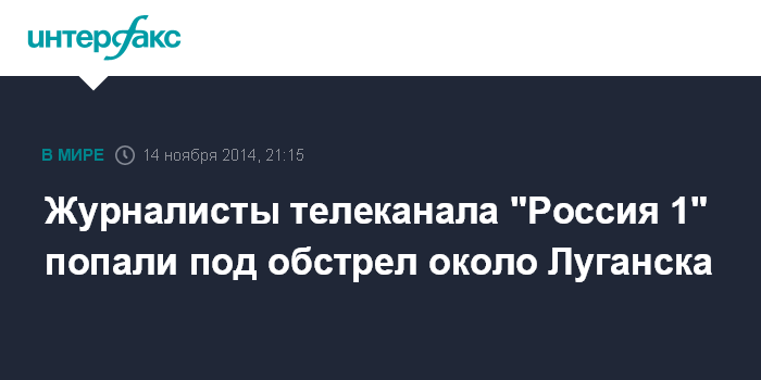 Москва. 14 ноября. INTERFAX.RU - Съемочная группа телеканала "Россия 1" попала под обстрел в Луганской области, сообщает сайт Вести.ru.