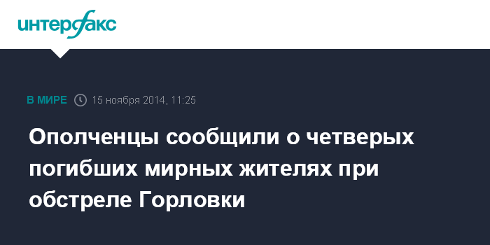 "В ходе обстрела украинскими силовиками города Горловка повреждения получили три многоэтажных дома, и, по нашей предварительной информации, погибли четыре мирных жителя, двое из которых дети. Но эта информация сейчас проверяется", - сказал агентству представитель штаба.