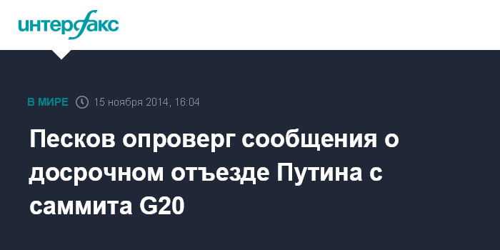 Ранее агентство Reuters со ссылкой на источники сообщило, что Путин якобы может пропустить заседание 16 ноября и покинуть его раньше официального окончания из-за давления со стороны западных лидеров в связи с ситуацией на Украине.