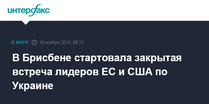 Москва. 16 ноября. INTERFAX.RU - Закрытая встреча лидеров ЕС и США по ситуации на Украине проходит в воскресенье в австралийском городе Брисбен, сообщает Associated Press.