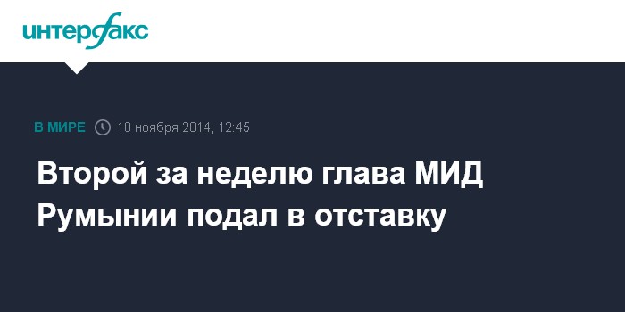 Москва. 18 ноября. INTERFAX.RU - Глава МИД Румынии Теодор Мелешкану объявил во вторник, что уходит в отставку, сообщают западные СМИ.