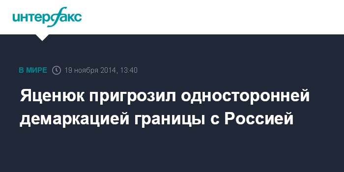 Москва. 19 ноября. INTERFAX.RU - Правительство Украины займется односторонней демаркацией государственной границы с Россией, заявил премьер-министр Арсений Яценюк.