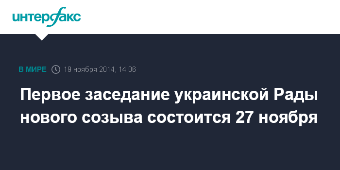Москва. 19 ноября. INTERFAX.RU - Рабочая группа приняла решение о проведении первого заседания Верховной рады Украины VIII созыва 27 ноября, сообщил глава рабочей группы по подготовке первого заседания украинского парламента, вице-премьер Владимир Гройсман.