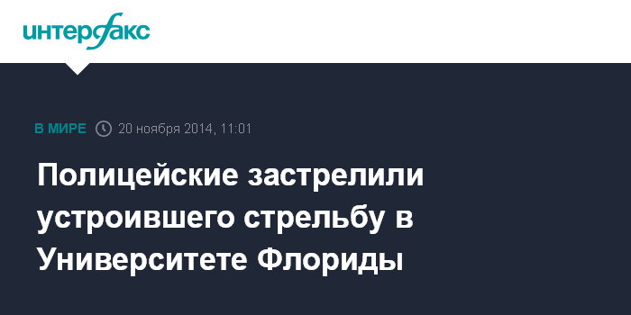 Москва. 20 ноября. INTERFAX.RU - Полицейские застрелили стрелка, открывшего огонь в библиотеке Университета Флориды и ранившего трех человек, сообщает CNN.