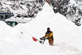 Трассы в районе снегопада перекрыты. Людям приходится самостоятельно расчищать подъезды к жилищам. У некоторых домов обваливаются крыши под тяжестью выпавшего снега.