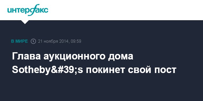 Глава аукционного дома Sotheby's покинет свой пост