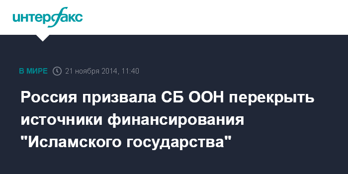 Россия призвала СБ ООН перекрыть источники финансирования "Исламского государства"