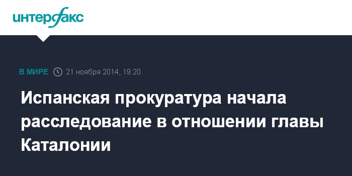 Москва. 21 ноября. INTERFAX.RU - Прокуратура Испании в пятницу начала расследование в отношении главы автономного сообщества Каталония Артура Маса в связи с прошедшим 9 ноября опросом о самоопределении этой территории, сообщают испанские СМИ.