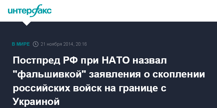 Москва. 21 ноября. INTERFAX.RU - Постпред РФ при НАТО Александр Грушко заявил, что утверждения НАТО о якобы концентрации российских сил на границе с Украиной являются фальшивыми.