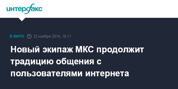 Москва. 22 ноября. INTERFAX.RU - Пользователи соцсетей смогут узнавать от членов нового экипажа МКС об экспериментах и их жизни в космосе.