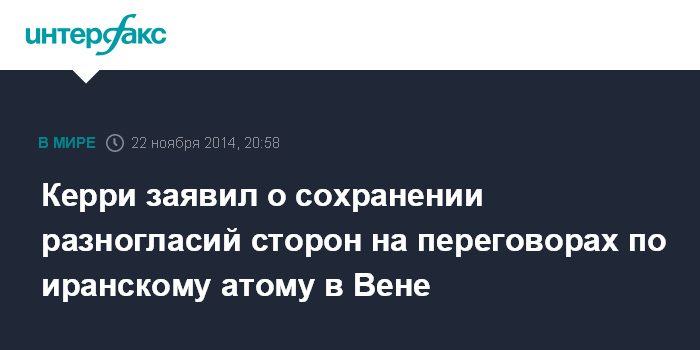 Москва. 22 ноября. INTERFAX.RU - Госсекретарь США Джон Керри заявил, что между сторонами переговоров по иранской ядерной программе, проходящих в Вене, сохраняются "серьезные разногласия", сообщает в субботу AP.