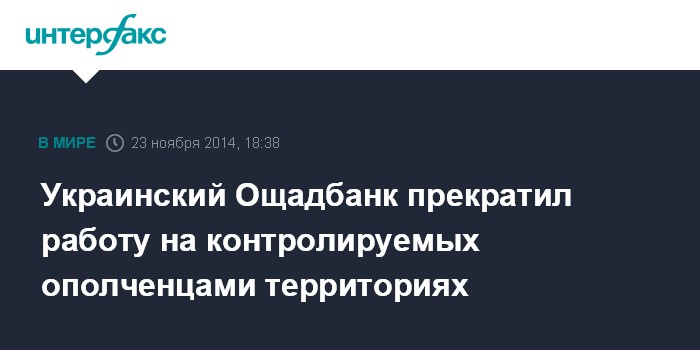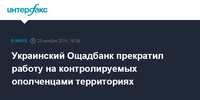 Украинский Ощадбанк прекратил работу на контролируемых ополченцами территориях