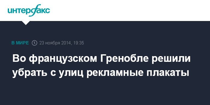 Москва. 23 ноября. INTERFAX.RU - Мэрия французского Гренобля объявила о скором начале операции, цель которой - убрать с улиц рекламные плакаты, сообщает в воскресенье Le Figaro.