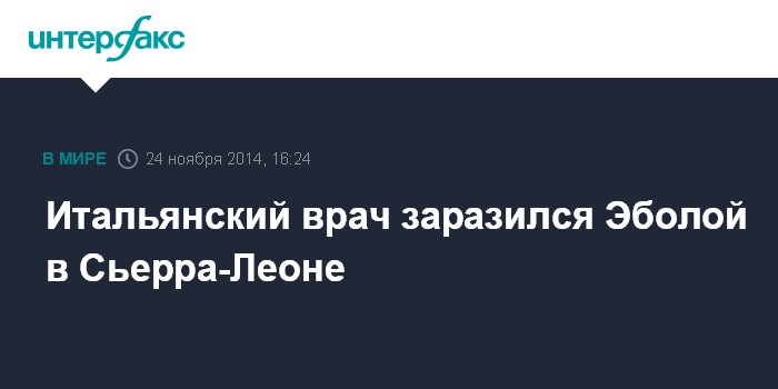 Москва. 24 ноября. INTERFAX.RU - Итальянский врач заразился лихорадкой Эбола во время работы в Сьерра-Леоне, сообщает La Repubblica со ссылкой на министерство здравоохранения Италии.