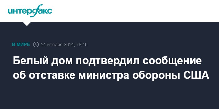 Москва. 24 ноября. INTERFAX.RU - Белый дом подтвердил, что министр обороны Чак Хейгел будет отправлен в отставку, передает телекомпания CNN.