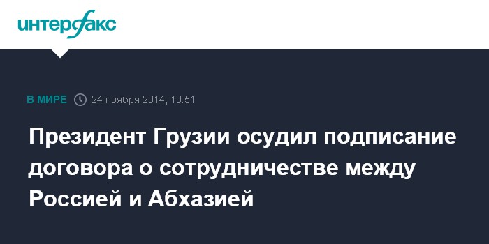 Он считает, что договор между Москвой и Сухуми фактически превращает "грузинскую территорию - Абхазию" в часть России. "Данный договор также грубо нарушает нормы международного права", - сказал Маргвелашвили, отметив необходимость "адекватного ответа" со стороны международного сообщества.
