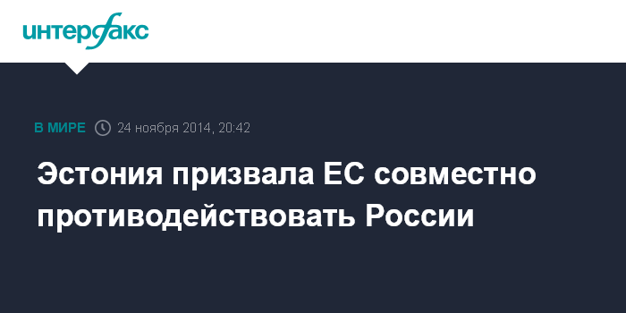 Москва. 24 ноября. INTERFAX.RU - Министр иностранных дел Эстонии Кейт Пентус-Роозиманнус (Keit Pentus-Rosimannus) призвала страны Европейского Союза предпринимать совместные шаги по противодействию политике России на Украине.