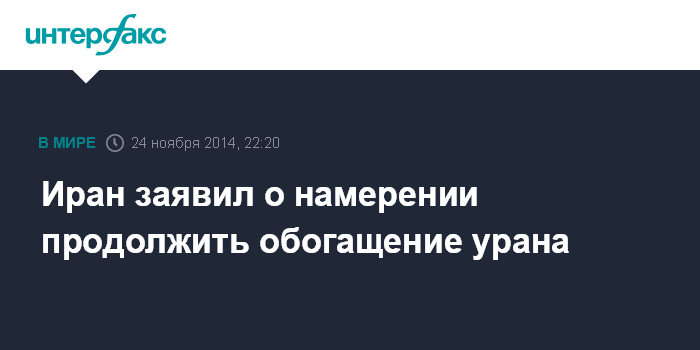 Москва. 24 ноября. INTERFAX.RU - Президент Ирана Хасан Рухани заявил в понедельник, что Иран не прекратит обогащение урана в стране.
