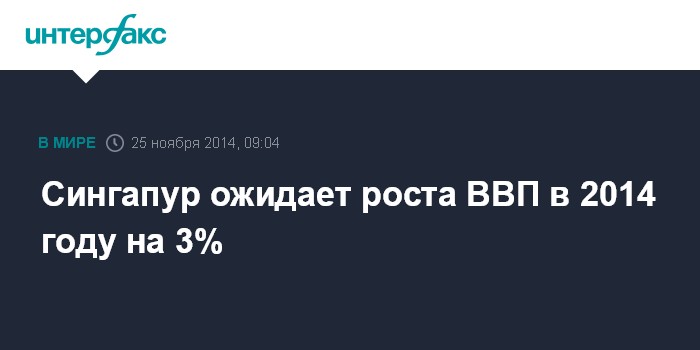 Сингапур. 25 ноября. ИНТЕРФАКС-АФИ - Экономика Сингапура по итогам 2014 году увеличится примерно на 3%, прогнозирует министерство торговли и промышленности.