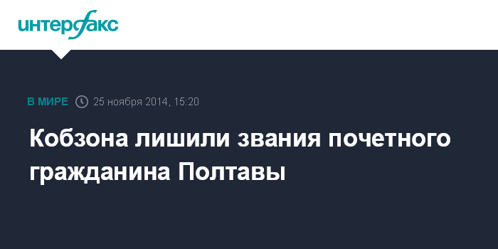 Москва. 25 ноября. INTERFAX.RU - Депутат Госдумы, народный артист СССР Иосиф Кобзон лишен звания почетного гражданина Полтавы, такое решение принято во вторник на сессии горсовета.
