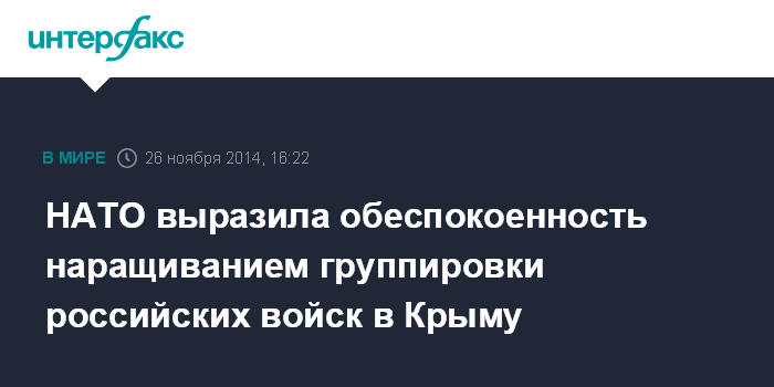 Москва. 26 ноября. INTERFAX.RU - НАТО обеспокоена стягиванием подразделений вооруженных сил РФ в Крым, заявил главнокомандующий объединенными вооруженными силами НАТО в Европе Филипп Бридлав.
