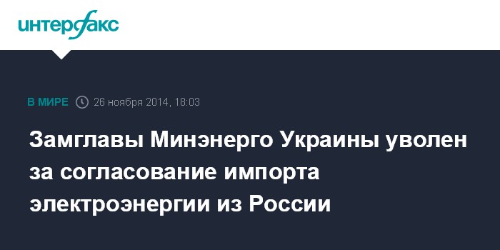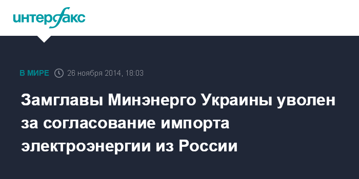 Замглавы Минэнерго Украины уволен за согласование импорта электроэнергии из России