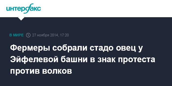Москва. 27 ноября. INTERFAX.RU - Французские фермеры привезли несколько десятков овец к подножию Эйфелевой башни в Париже в знак протеста против экологической политики правительства, которую они считают губительной для своих хозяйств.