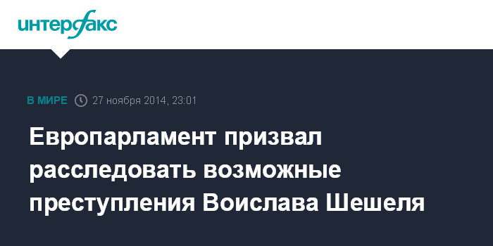 Москва. 27 ноября. INTERFAX.RU - Члены Европарламента одобрили резолюцию, призывающую власти Сербии проверить возможные нарушения уголовного законодательства страны, совершенные сербским политиком Воиславом Шешелем, сообщают в четверг европейские СМИ.