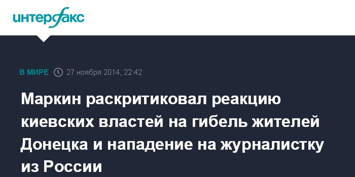 Маркин раскритиковал реакцию киевских властей на гибель жителей Донецка и нападение на журналистку из России