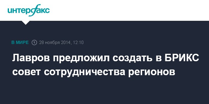 Москва. 28 ноября. INTERFAX.RU - В Москве рассматривают возможность создания совета сотрудничества регионов в рамках БРИКС, заявил в пятницу глава МИД Сергей Лавров.