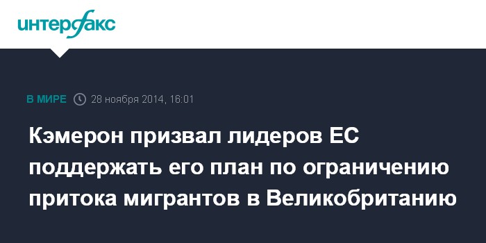 Кэмерон призвал лидеров ЕС поддержать его план по ограничению притока мигрантов в Великобританию