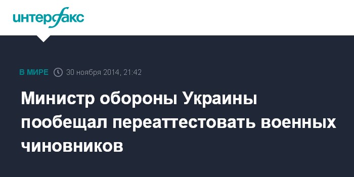 Москва. 30 ноября. INTERFAX.RU - Руководители министерства обороны и вооруженных сил Украины пройдут внеочередную переаттестацию, заявляет глава украинского Минобороны Степан Полторак.