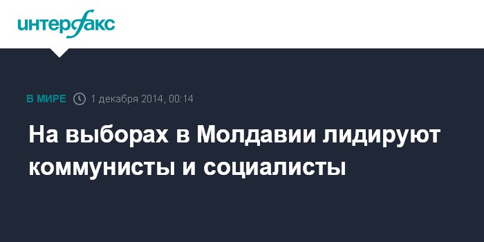 Москва. 1 декабря. INTERFAX.RU - Две левые партии лидируют на парламентских выборах в Молдавии, сообщает сайте Центральной избирательной комиссии республики после обработки данных с 17% избирательных участков.
