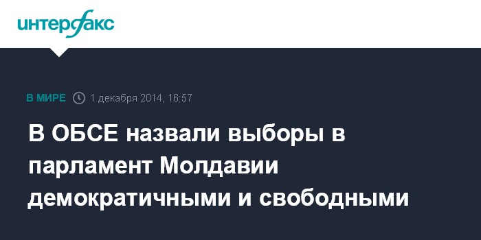 Москва. 1 декабря. INTERFAX.RU - Миссия наблюдателей БДИПЧ ОБСЕ считает, что выборы в парламент Молдавии были демократичными и свободными, заявила на пресс-конференции в понедельник руководитель делегации наблюдателей от Парламентской ассамблеи ОБСЕ на выборах в парламент Молдавии Арта Дейд.