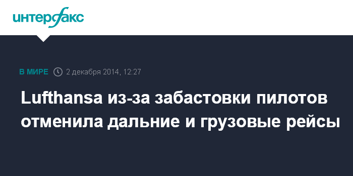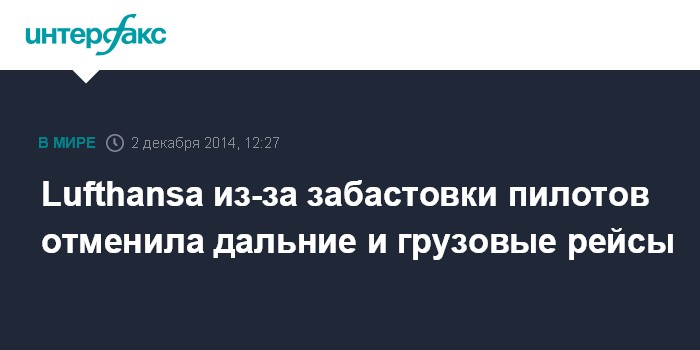 Москва. 2 декабря. INTERFAX.RU - Двухдневная акция протеста пилотов немецкой авиакомпании Lufthansa во вторник затронула грузовые рейсы и рейсы на дальние расстояния, сообщает немецкий журнал Der Spiegel.