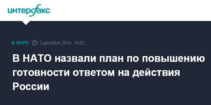 "Реактивированный" план действий, одобренный главами государств и правительств на саммите в Уэльсе, является ответом на развитие обстановки с безопасностью в более широком плане в Европе и близ нее. Он отвечает на вызовы, брошенные Россией, и на их стратегические последствия", - сказано в заявлении глав МИД стран НАТО.