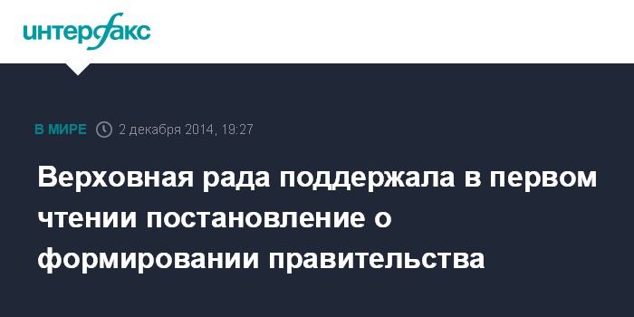 Москва. 2 декабря. INTERFAX.RU - Верховная Рада Украины на вечернем заседании во вторник приняла за основу постановление о формировании состава Кабинета министров.