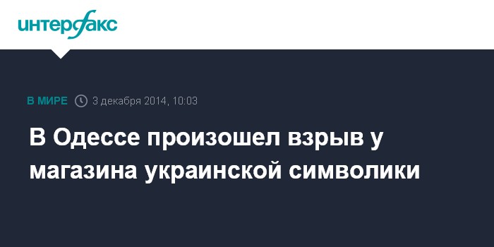 Москва. 3 декабря. INTERFAX.RU - Милиция передала материалы уголовного производства по факту взрыва в магазине в центре Одессы в ночь на среду в Службу безопасности Украины в связи с тем, что события были квалифицированы по признакам ч.1 ст. 258 (террористический акт) Уголовного кодекса Украины.