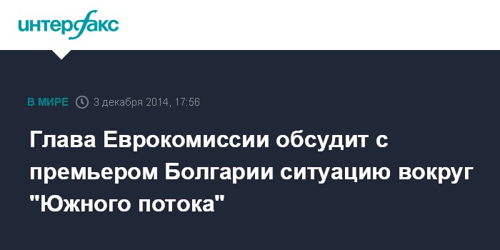 Москва. 3 декабря. INTERFAX.RU - Председатель Еврокомиссии Жан-Клод Юнкер в четверг обсудит с премьер-министром Болгарии Бойко Борисовым ситуацию, возникшую в связи с отказом России продолжать проект "Южный поток".