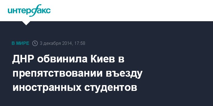 Москва. 3 декабря. INTERFAX.RU - Украинская власть препятствует въезду иностранных студентов для обучения в вузах ДНР, заявил журналистам министр образования самопровозглашенной Донецкой народной республики Игорь Костенок.
