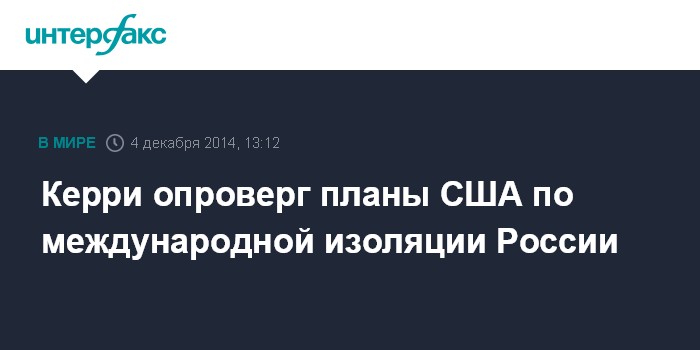 Москва. 4 декабря. INTERFAX.RU - США не добиваются международной изоляции России, а лишь хотят, чтобы в Москве способствовали решению украинского кризиса, заявил в четверг американский госсекретарь Джон Керри.