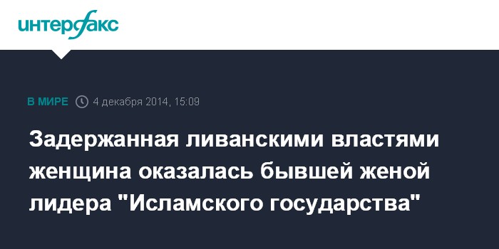 Во вторник ливанские СМИ сообщили, что военнослужащие армии Ливана якобы задержали жену и одного из сыновей лидера "Исламского государства". Задержание, по их данным, было произведено на погранпереходе на границе Ливана с Сирией. Женщина пыталась пересечь границу, используя поддельный паспорт. Ее вместе с сыном сразу перевезли на допрос в министерство обороны Ливана.