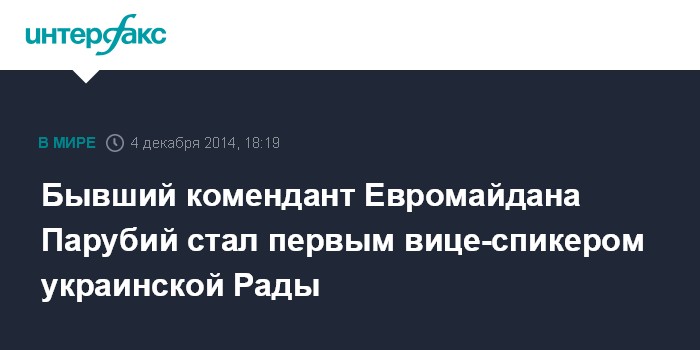 Москва. 4 декабря. INTERFAX.RU - Верховная рада Украины утвердила народного депутата от фракции "Народный фронт" Андрея Парубия на должности первого вице-спикера. Народный депутат от фракции "Объединение "Самопомич" Оксана Сыроид стала вице-спикером парламента, эту должность впервые в истории независимой Украины заняла женщина.