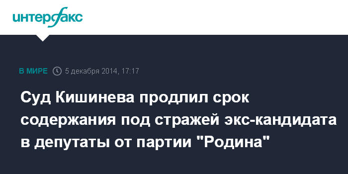 Суд Кишинева продлил срок содержания под стражей экс-кандидата в депутаты от партии "Родина"