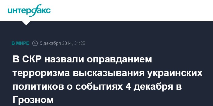 В СКР назвали оправданием терроризма высказывания украинских политиков о событиях 4 декабря в Грозном