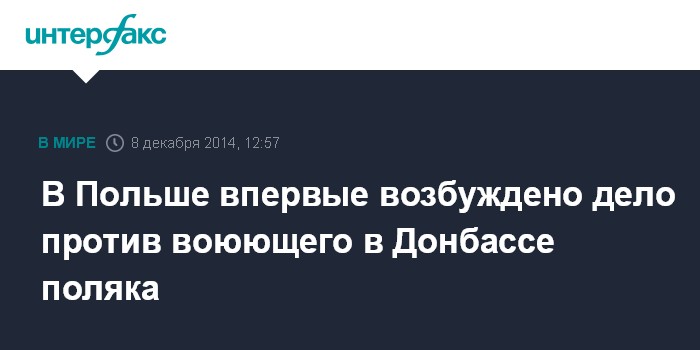 Москва. 8 декабря. INTERFAX.RU - Власти Польши начали преследование своих граждан, воюющих в отрядах ополченцев Донбасса.